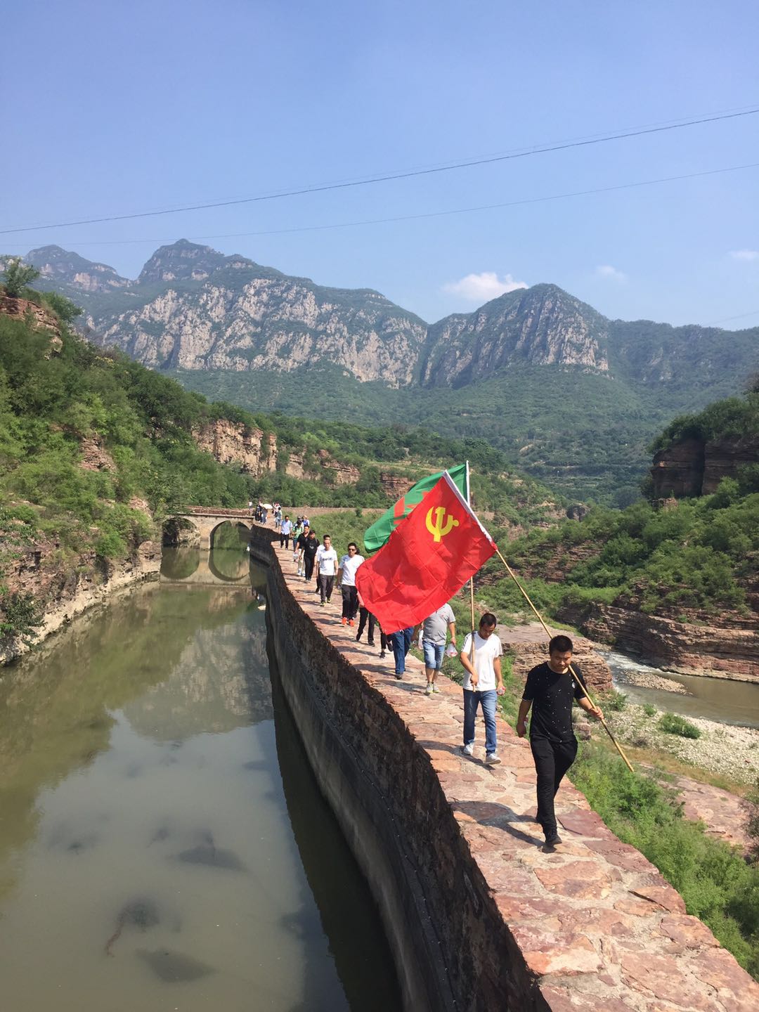 7月1日當(dāng)天,公司黨委組織各支部成員、優(yōu)秀共產(chǎn)黨員及入黨積極分子重走紅旗渠源頭。在去紅旗渠源頭的途中,還進(jìn)行了有關(guān)紅旗渠方面的知識(shí)競(jìng)賽答題活動(dòng),大家積極踴躍的搶答,在答題的基礎(chǔ)上,還穿插紅色經(jīng)典歌曲,特別是郭釧總經(jīng)理唱的《映山紅》,把我們帶回到了烽火連天的革命年代,整個(gè)互動(dòng)環(huán)節(jié)可謂是精彩不斷,歌聲和掌聲響徹天際。9時(shí)40分,大家從源頭開(kāi)始向王家莊徒步進(jìn)發(fā),在烈日炎炎之下,黨員們個(gè)個(gè)汗流浹背,經(jīng)過(guò)3個(gè)小時(shí)12公里的徒步旅程,于12時(shí)40分到達(dá)活動(dòng)終點(diǎn)―王家莊。經(jīng)過(guò)徒步重走紅旗渠活動(dòng),大家親身感悟到了 “自力更生、艱苦創(chuàng)業(yè)、團(tuán)結(jié)協(xié)作、無(wú)私奉獻(xiàn)”的紅旗渠精神。
